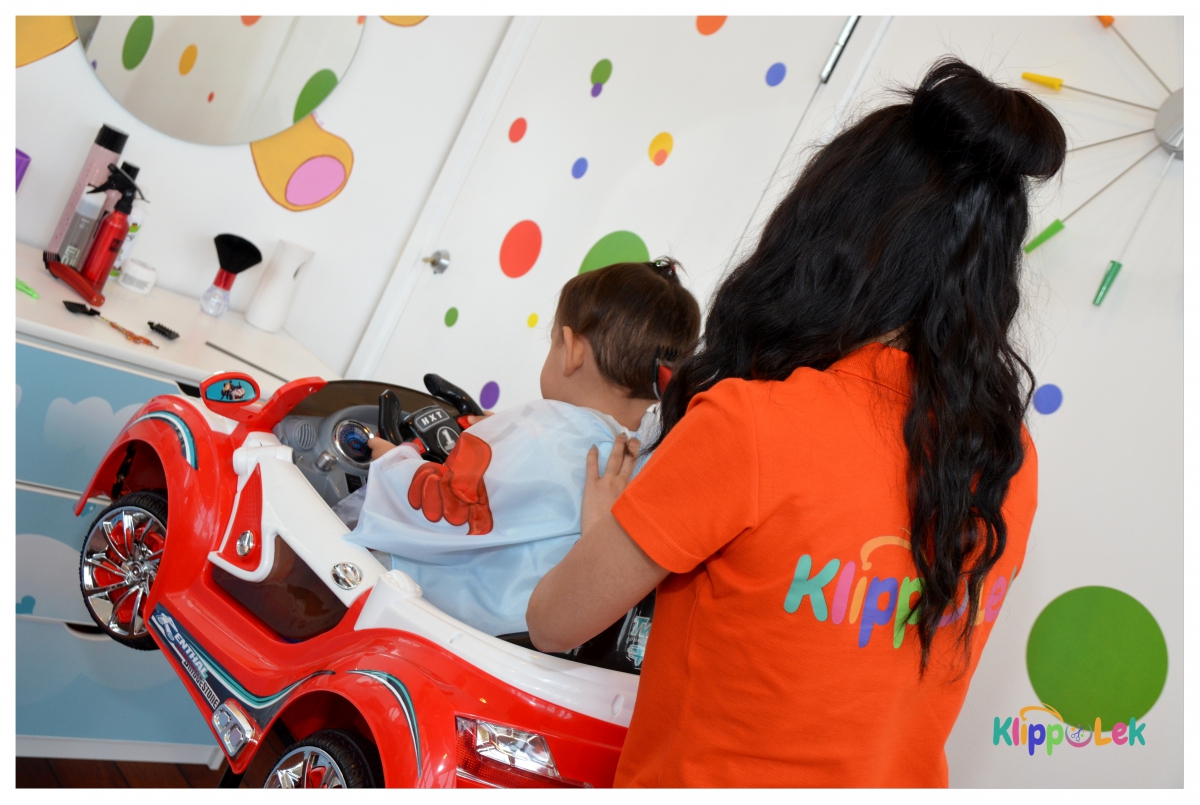 Barnen blir klippta medan de tittar på barnvänliga filmer och föräldarna kopplar av med en kopp kaffe eller te.